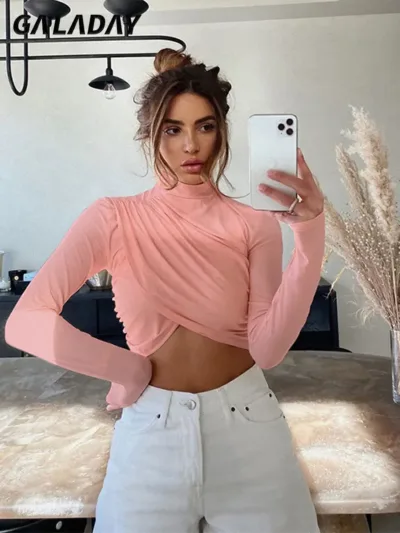 At home, Black Series, CLOTHING, Long Sleeve, Pink Series, SHOP BY CATEGORY, SHOP BY COLOR, SHOP BY OCCASION, SWEATSHIRTS, T-shirt, T-shirt, VALENTINE'S DAY, Valentine's Ready, White SeriesGALADAY Long Sleeve Fashion Navel Slim T-shirt