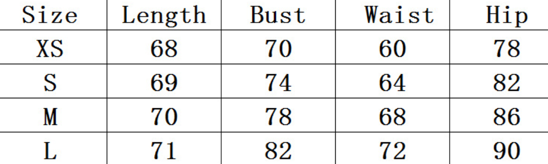 Size Chest Waist Hips 2XS 32 26 32 XS 34 28 34 S 36 30 36 M 38 32 38 L 40 34 40 XL 42 36 42 All measurements are in INCHES