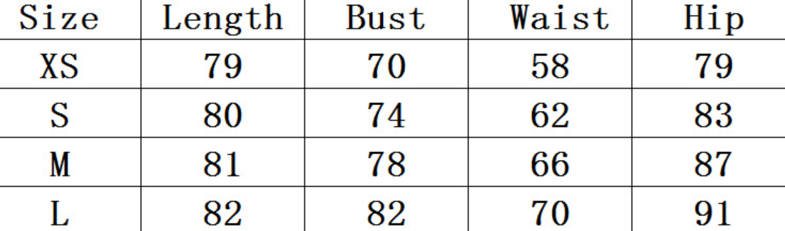 Size Chest Waist Hips 2XS 32 26 32 XS 34 28 34 S 36 30 36 M 38 32 38 L 40 34 40 XL 42 36 42 All measurements are in INCHES